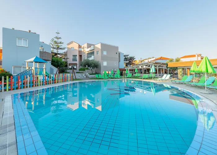 Iolida Village Water Park Hotel Agia Marina tilbyder indkvartering 1 km fra Platanias Strand med WiFi i offentlige områder. Agia Marina center kan man nå inden for 10 minutters gang.