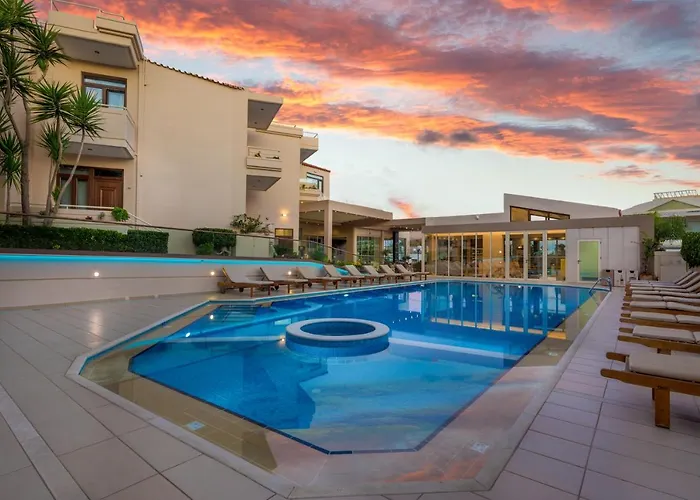 Eurohotel Theo Hotel Agia Marina ligger 3 km fra Platanias Strand, hvor der er en værdiboks og en nærbutik. Agia Marina Strand er mindre end 1 km væk.